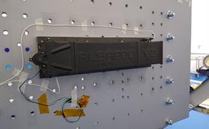 AlbaPod V2 picosatellite dispenser mounted and ready for pyroshock testing. Credit: STFC RAL Space